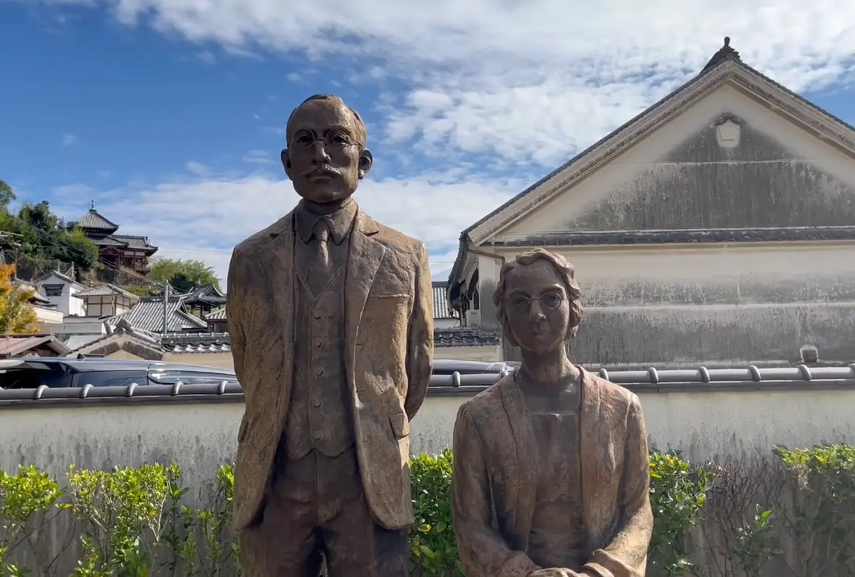 広島県竹原市にある「憧憬の広場」は、たけはら町並み保存地区に指定されるメインストリート、本町通り沿いにある広場です。歴史民俗資料館の隣にあり、ニッカウイスキーの創業者で「日本のウイスキーの父」として有名な竹鶴政孝&リタ像が立っています。