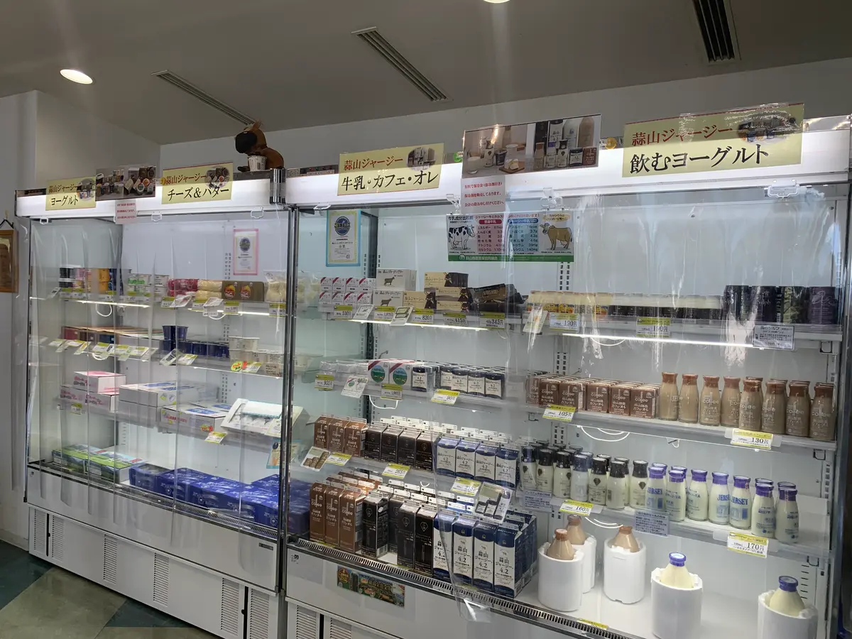 牛乳やスイーツ、アイスなどのお土産を購入できる