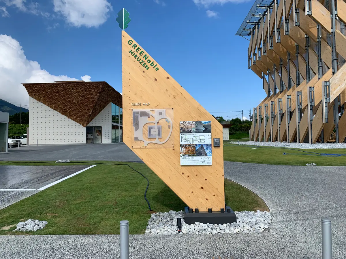 岡山県真庭市蒜山上福田にある「GREENable HIRUZEN」は、サステナブルの価値をより多くの人に知ってもらうための発信拠点施設です。建物は、国立競技場の設計に携わった隈研吾さんが監修。GREENable HIRUZEN敷地内は入場自由です。