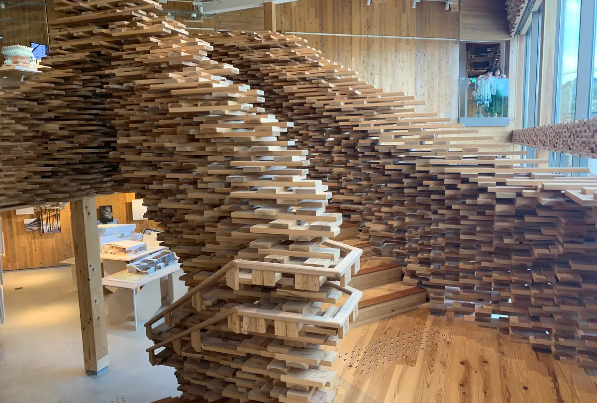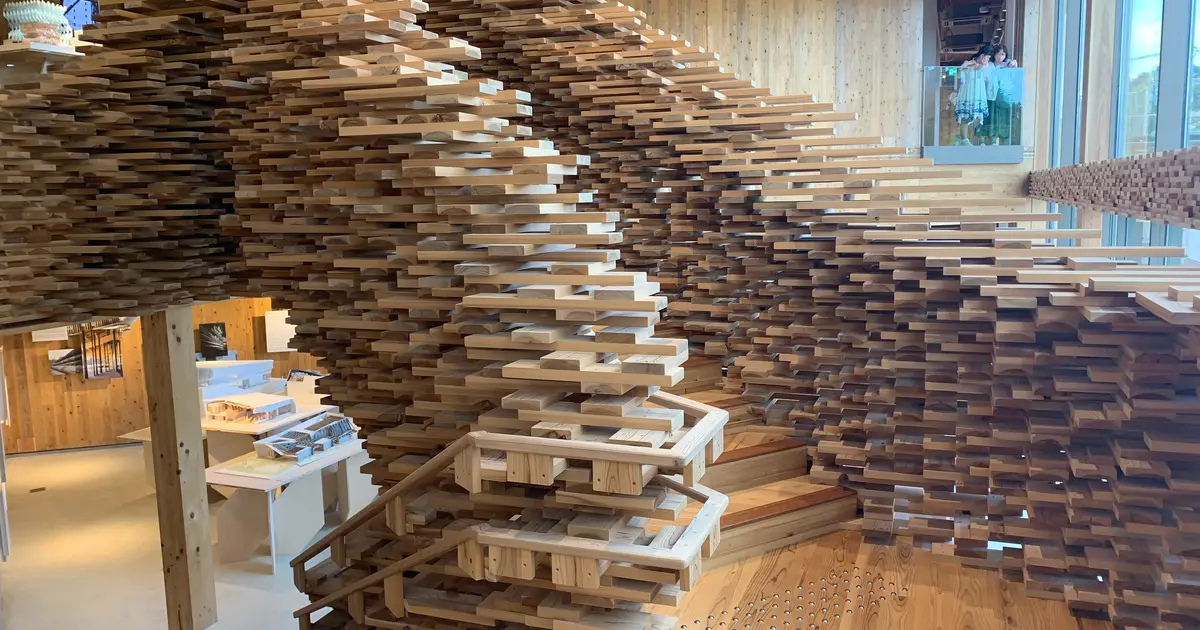 CLTという木材を接着したパネルを多用した大きなパビリオンがあります🪵中に入ることもできて、まるで自分が建築物の一部になった気分になりました😳💭
