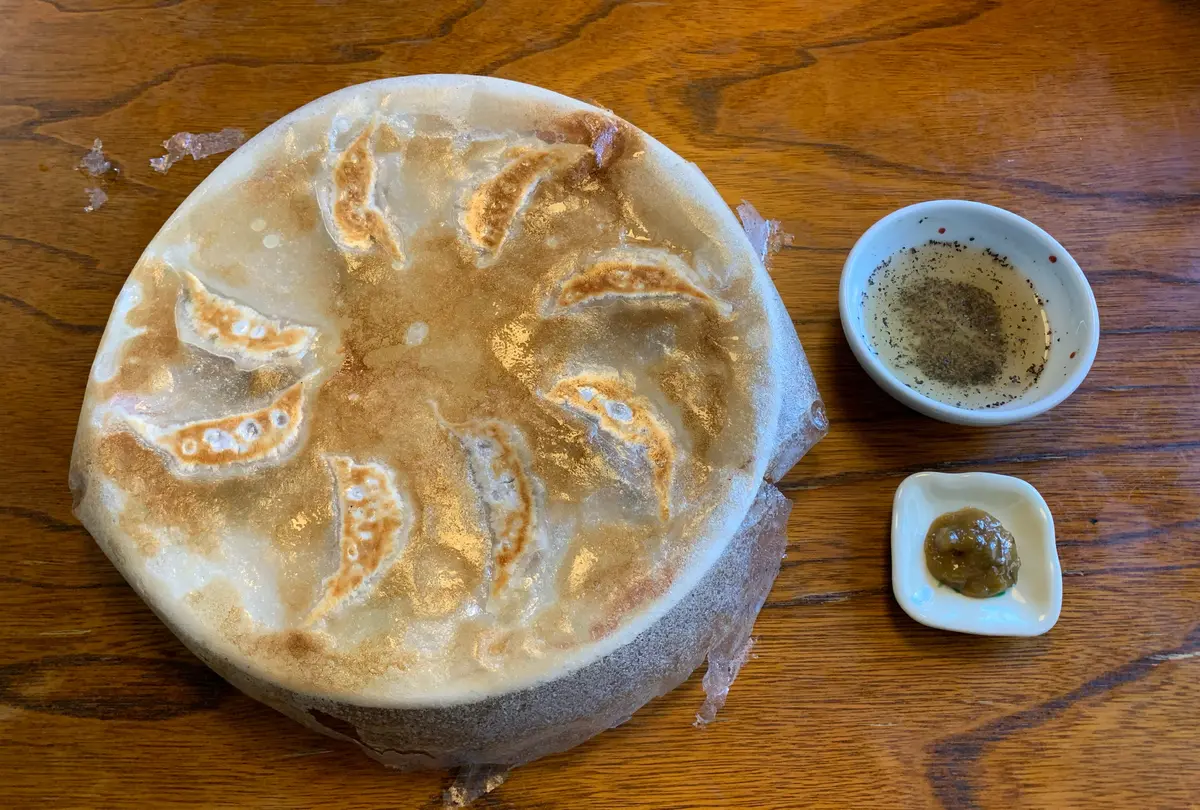 イノシシってどんな味なんだろう…と不安でしたが、全く臭みのない美味しい餃子で、なにより青唐辛子味噌との相性バッチリ!🥟