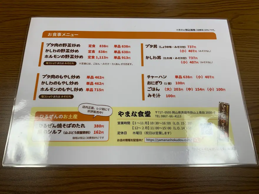 岡山県真庭市にある「やまな食堂」は、「ひるぜん焼そば」のお店です。蒜山のご当地グルメである「ひるぜん焼きそば」が人気で、濃厚な味噌ダレと香ばしい鶏肉が絶妙なバランス。麺が240gとボリュームも満点。