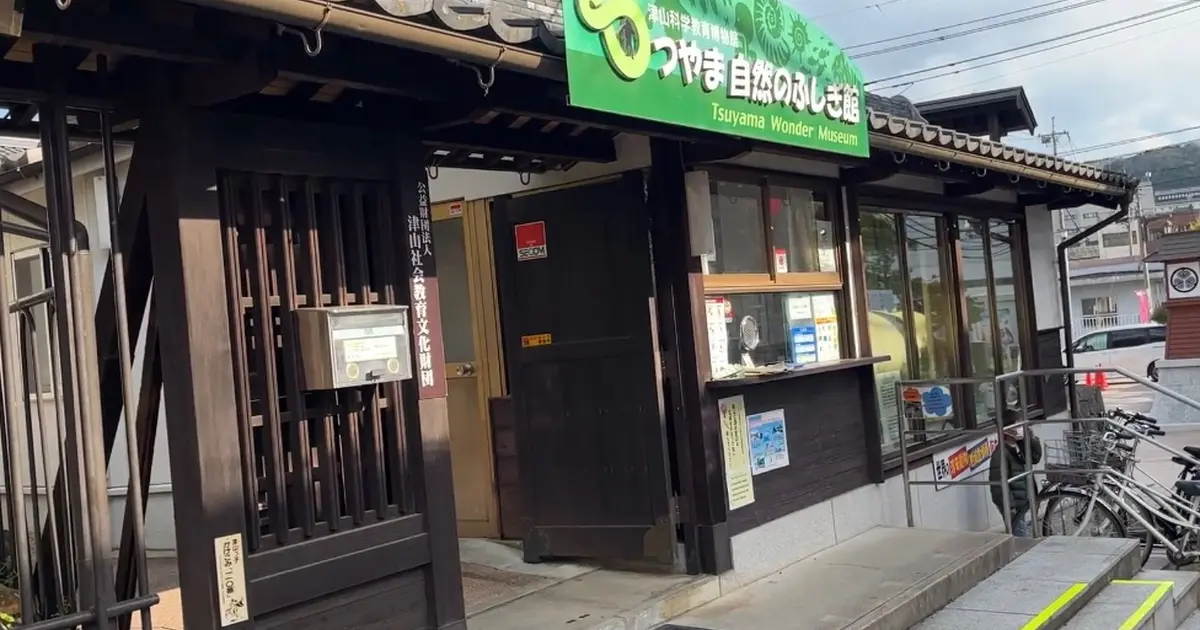 岡山県津山市にある「つやま自然のふしぎ館」は、自然史の総合博物館です。常設展示では、世界各地の動物の剥製や化石鉱石類、貝類、昆虫類、人体、標本類など約20,000点が常設展示されており、子供から大人まで楽しめます。入場料は大人800円、子ども600円です。