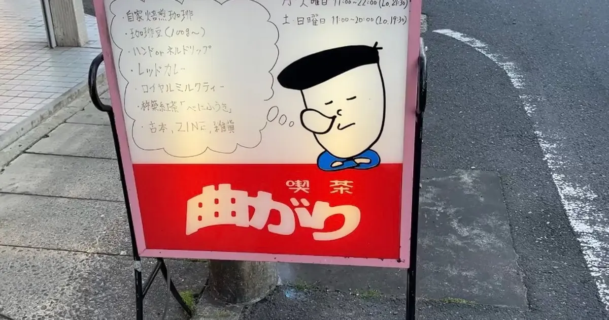 「喫茶曲がり」は、岡山県津山市にある喫茶店です。店内はおしゃれで、たくさんの本が置かれており、ゆっくりと読書を楽しむことができます。月に1回ほど、作家や店舗による個展、展示販売会なども開催。