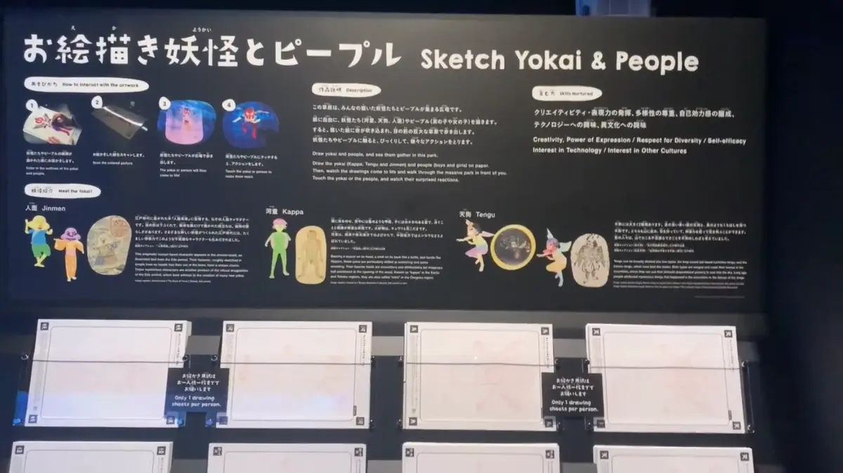 塗り絵をスキャンしてもらい、自分だけの妖怪がスクリーン内でテクテク歩きます🚶♂️