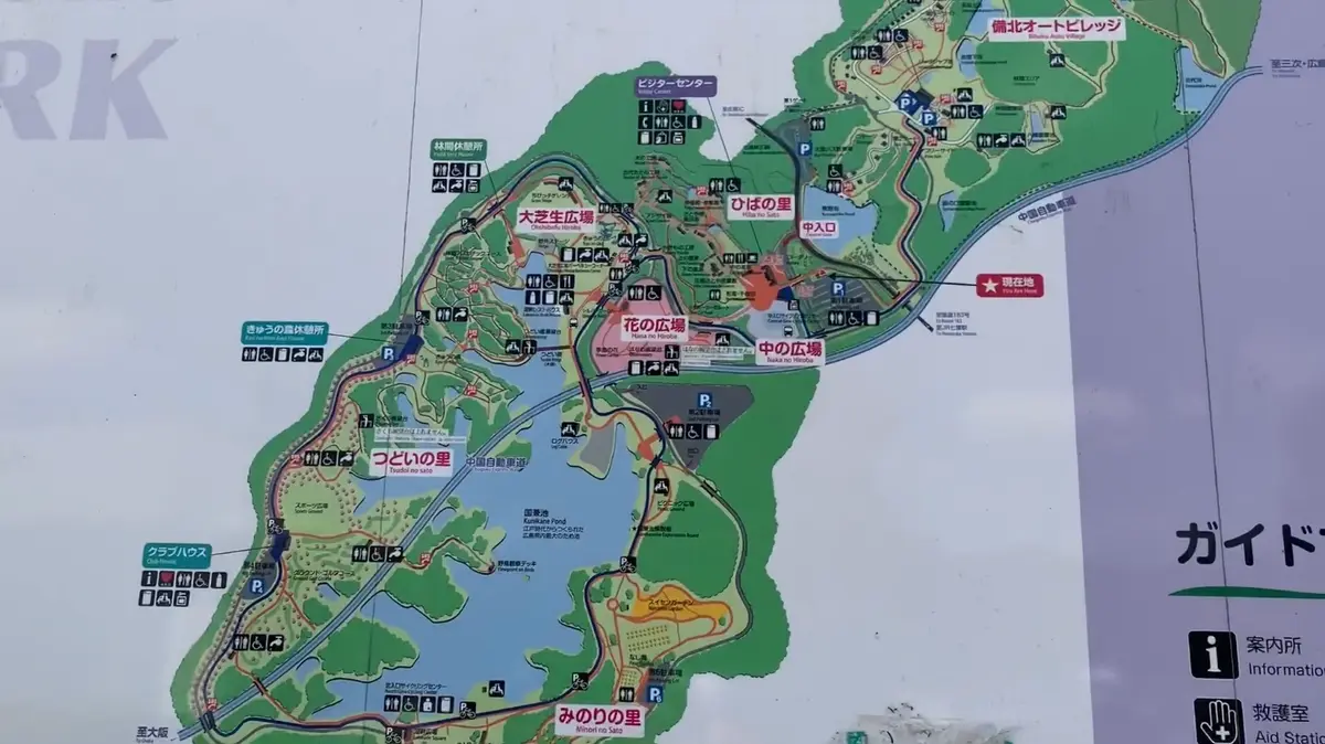 「国営備北丘陵公園」は、広島県庄原市にある大型公園です。園内には、中国山地の景観が再現された「ひばの里」や、春から秋にかけて色とりどりの花が咲き誇る「花の広場」があり、季節によって様々な花を楽しむことができます。また、冬にはイルミネーションも見ることができます。多くの家族連れが訪れ、思いっきり遊べる大きな芝生の広場もあります。
