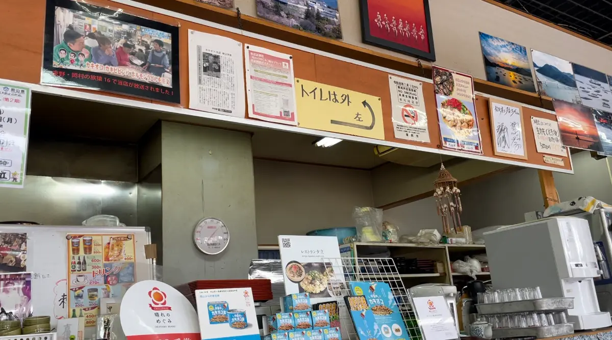 旅のスタートは岡山駅。お土産屋や飲食店がたくさんあります。