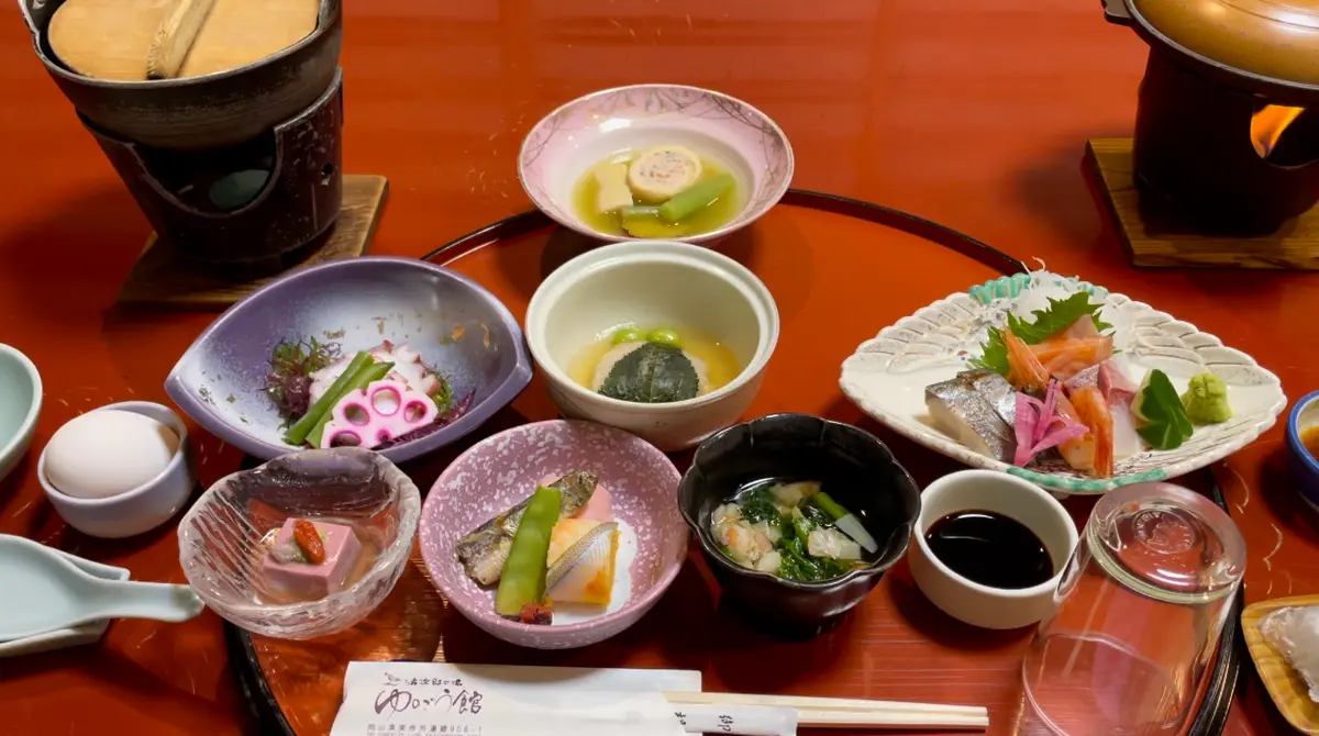 夕食は地元の食材を使った豪華な懐石料理!