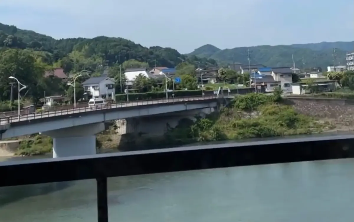 窓からは川と山が見える!