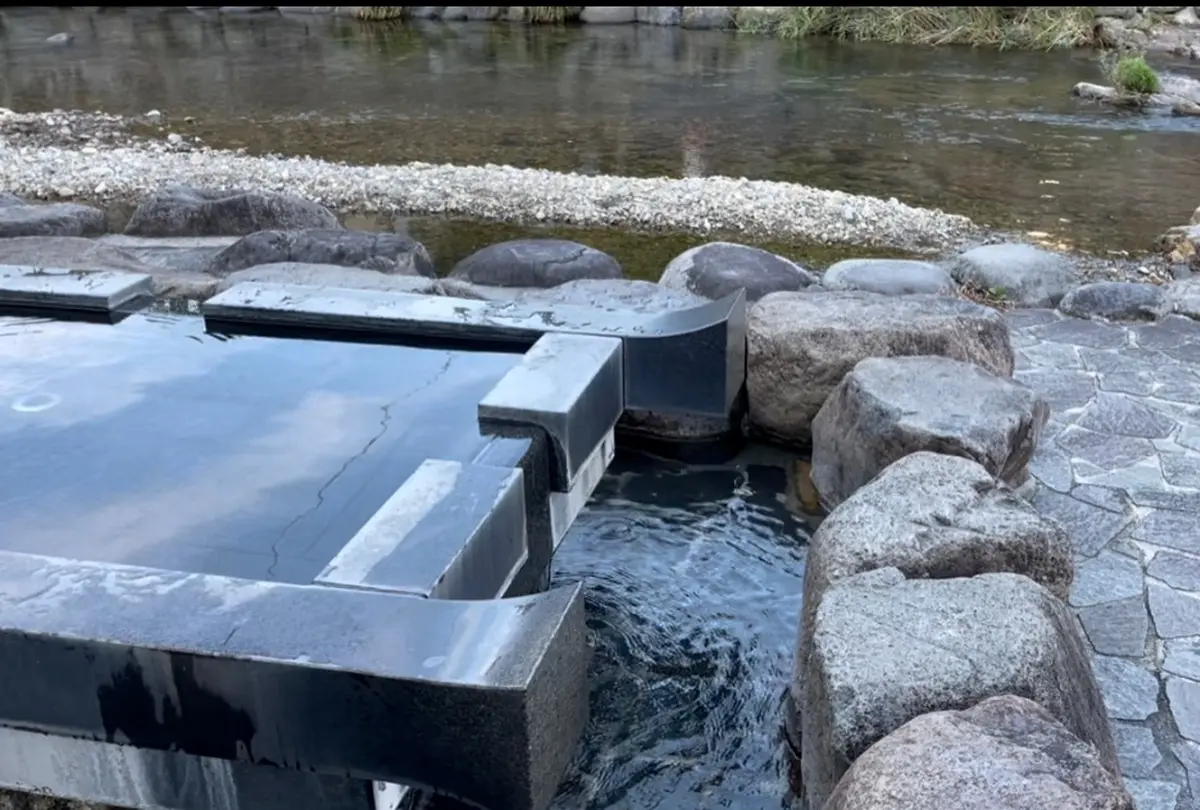 ここは、川を眺めながら入れる足湯で、2つあるうちの1つ。小さめの足湯です♨️
