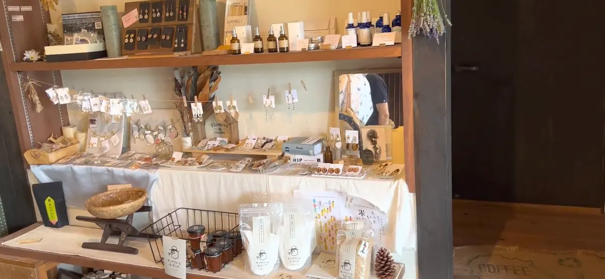店内は、半分雑貨屋さんみたいになっていて、地元作家さんのアクセサリーや陶器、地元の名産品もおいてあります。