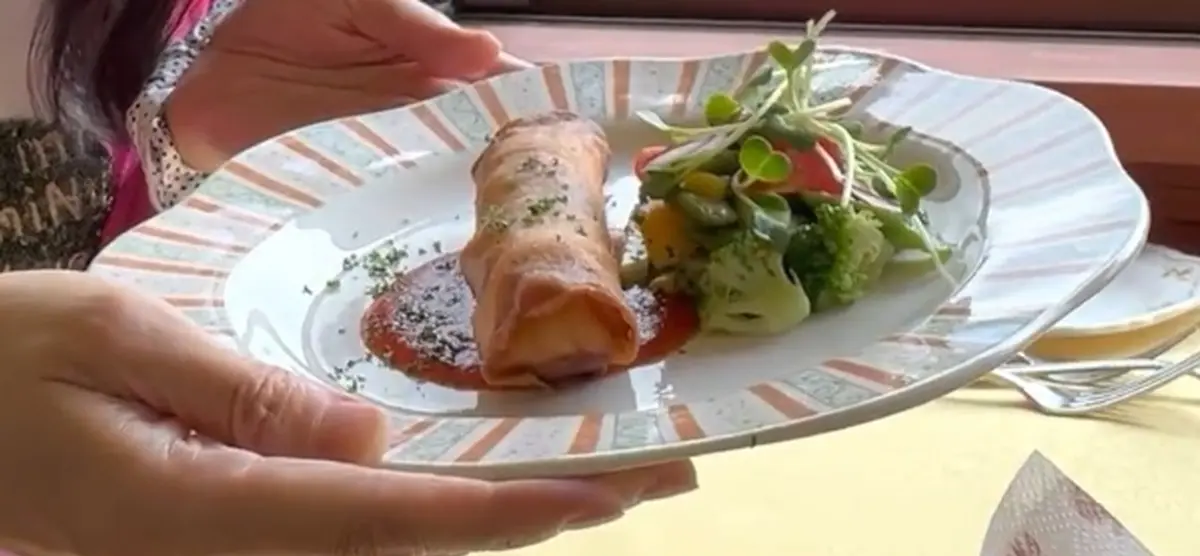 季節の野菜がたっぷり使われていて、春巻きとの組み合わせがボリュームあって美味しい!パン🥖もいただきました