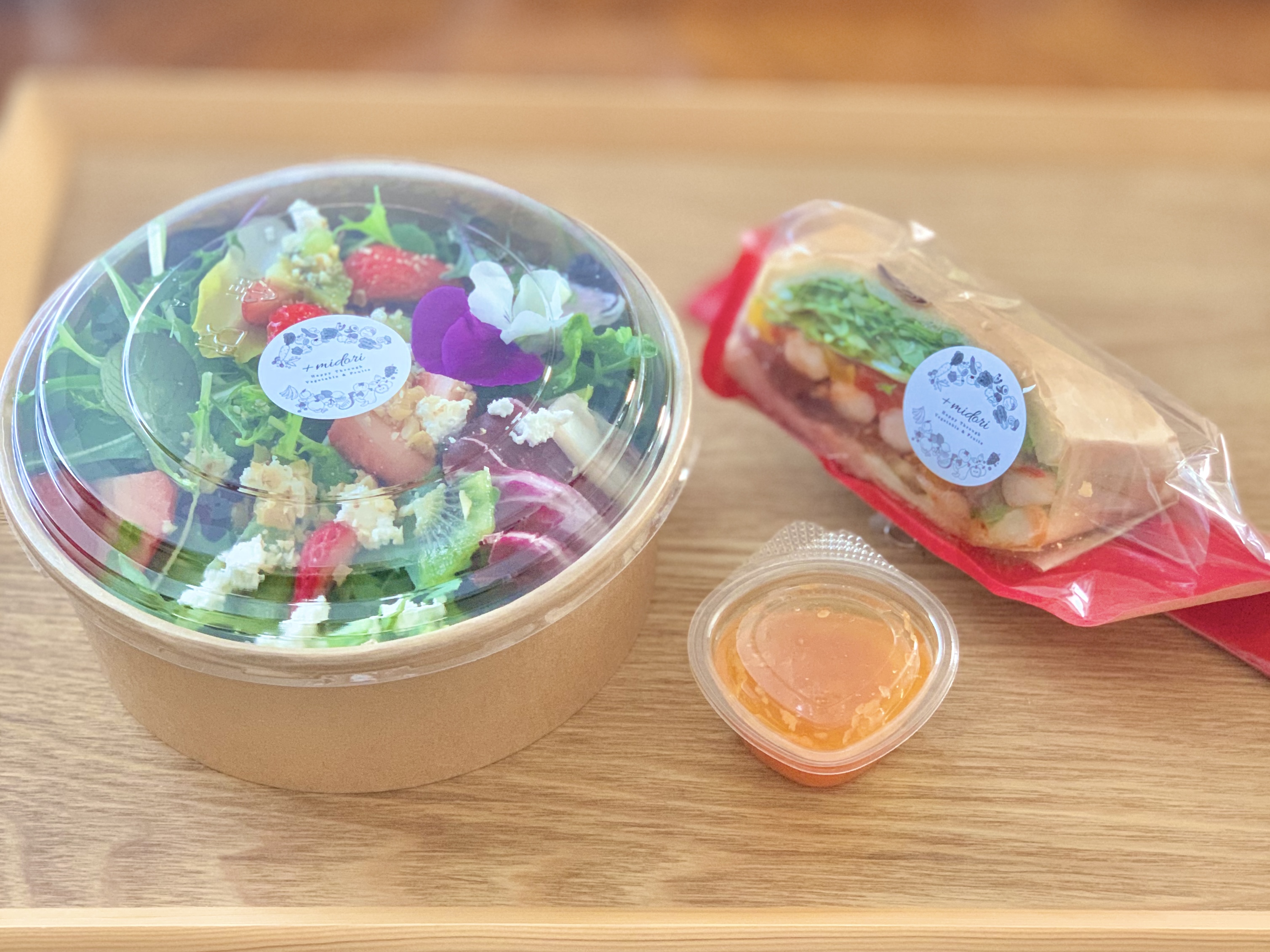 【+ midori (プラスミドリ)】青果店が作るフレッシュな野菜をチャージ!サンドイッチ、サラダ、お弁当にスムージーが揃う店