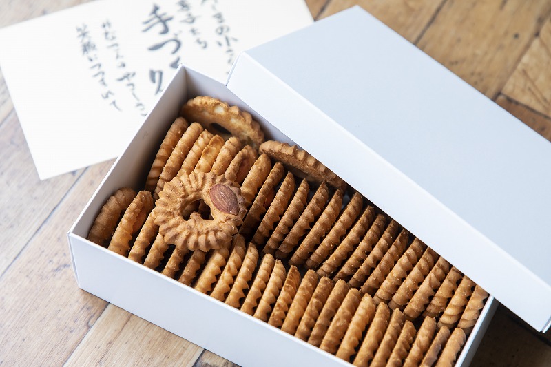 箱の中に隙間なく並んでいるのは、ドーナツ型のクッキー。