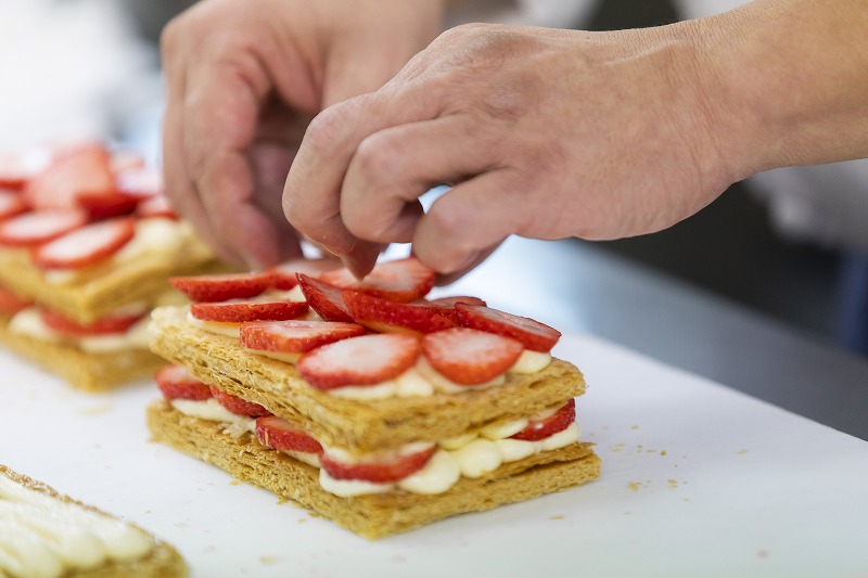 色とりどりのケーキが並ぶパティスリー。その一角で堂々たる存在感を放つのは、シェフパティシエの高田さんが手がけるパンたち。